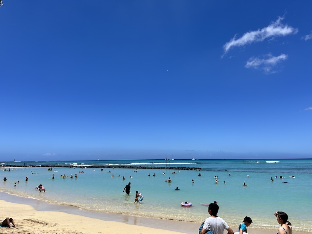 After lunch, we walked along the beach at Waikiki. The water was a crystal blue and was perfect for the hot summer day.